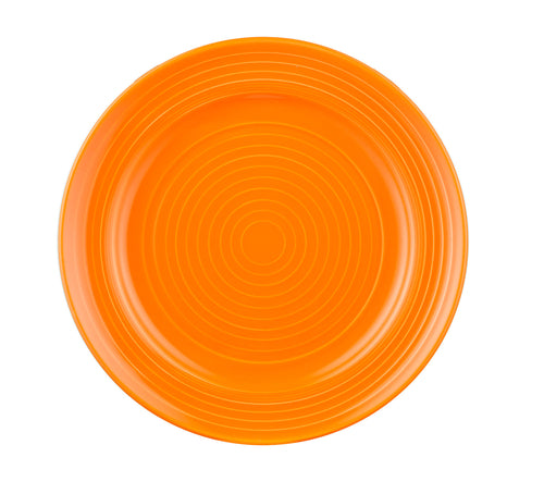 Tango Plate, 9" dia. x 1-1/8"H, round, embossed, dishwasher, oven and microwave safe, porcelain, Tangerine (Sold by case)