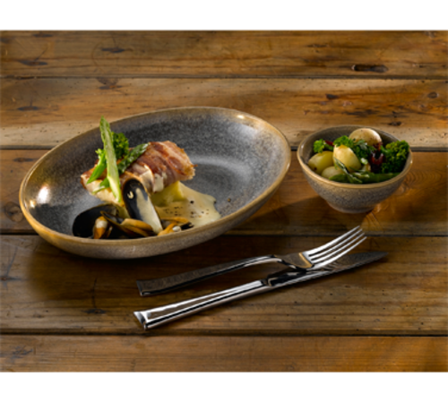 Plate, 8" dia., round, coupe, rolled edge, dishwasher & microwave safe, ceramic, Dudson, Evo, Granite (2 year edge & chip warranty) (stock item)