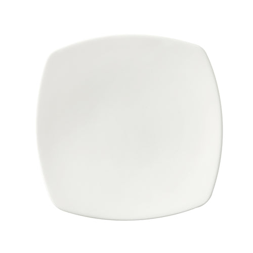 Plate, 10-5/8", square, rolled edge, geometric line, scratch/chip resistant, microwave, dishwasher & oven safe up to 380°F, porcelain, Corona, Asia, bright white (Stocked Item)