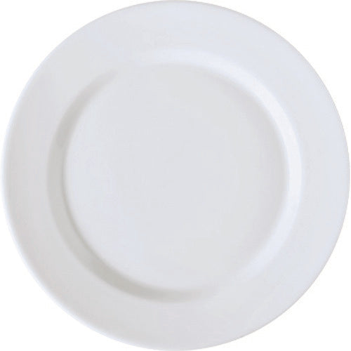 Plate, 11" dia., round, rolled edge, scratch/chip resistant, microwave, dishwasher & oven safe up to 380°F, porcelain, Corona, Elegance, bright white (Stocked Item)