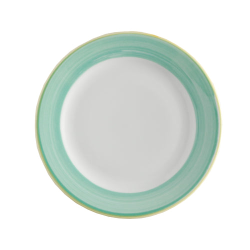 Plate, 7-1/4" dia., round, rolled edge, scratch/chip resistant, microwave, dishwasher & oven safe up to 380°F, porcelain, yellow edge, Corona, Calypso, Green (Stocked Item)