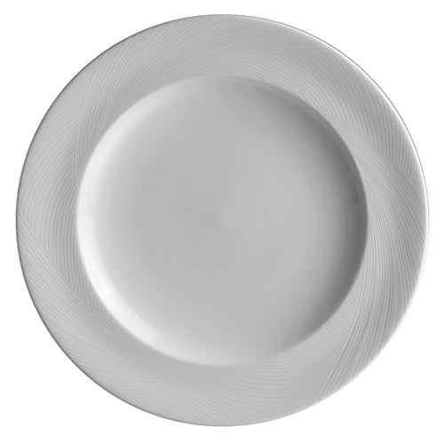 Banquet Plate, 11" dia, round, medium embossed rim, bone china, white, Foliobone Kord (minimum = case quantity) (stock item)