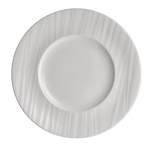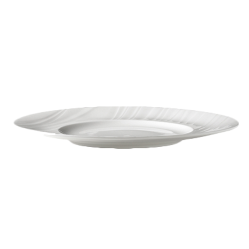 Plate, 11" dia., round, wide embossed rim, bone china, white, Foliobone Ruche (minimum = case quantity) (stock item)