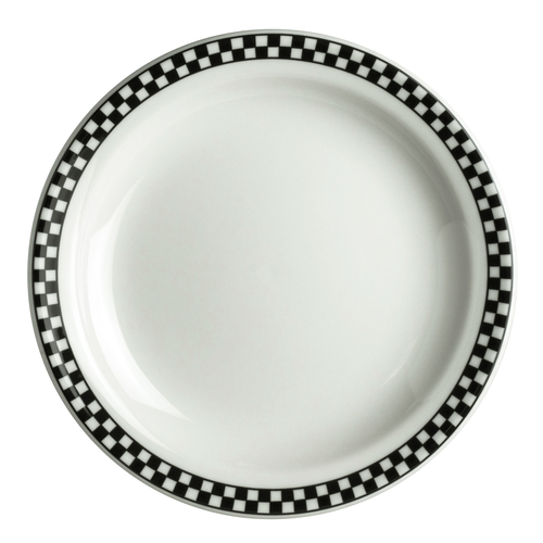 Plate, 9-3/8", round, narrow rim, Homer, Black Checkers (stock item)