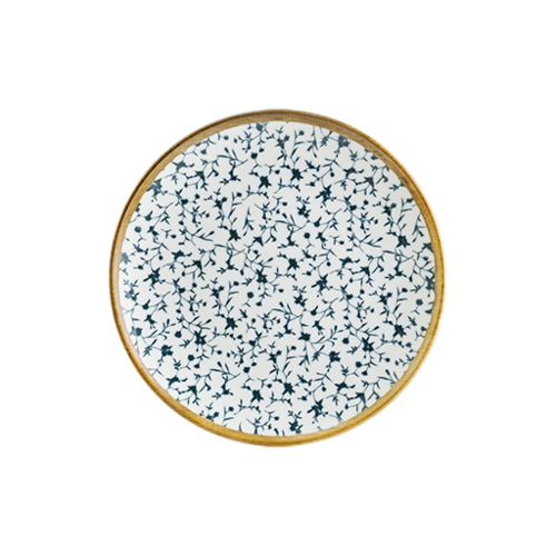 Calif Porcelain Plate, 6.75" x 6.75" x 0.75, white and blue, round, (priced by each packed by 12 each per case case can not be broken)