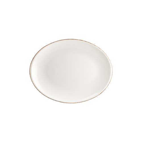 Retro Porcelain Plate, 14" x 11" x 1, warm white and brown, oval, (priced by each packed by 6 each per case case can not be broken)