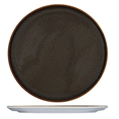 Bonna Pizza Plate, 12-5/8" dia., round, flat, coupe, rolled edge, chip and scratch resistant, microwave and dishwasher safe, porcelain, reactive glaze, Ore, Tierra, brown (priced by each, packed 6 each per case, case cannot be broken)