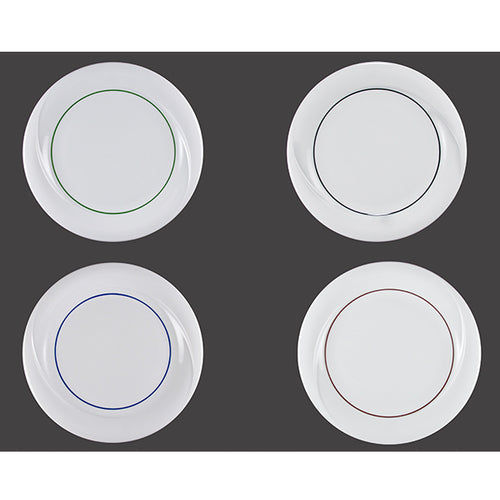 X-Tanbul/Heatwave Plate, 9" dia., round, rolled edge, Healthcare, Gural porcelain, European white with black line (priced by each, packed 12 each per case, case cannot be broken)