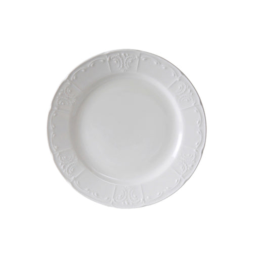 Plate, 6" dia., round, wide rim, embossed, microwave & dishwasher safe, oven proof, fully vitrified, lead-free, Chicago, Porcelain White