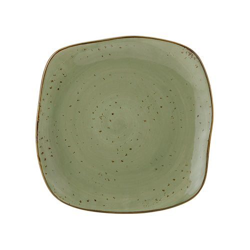 Plate, 11" x 11", square, microwave & dishwasher safe, oven proof, fully vitrified, lead-free, porcelain, TuxTrendz®©, Artisan Geode, Olive