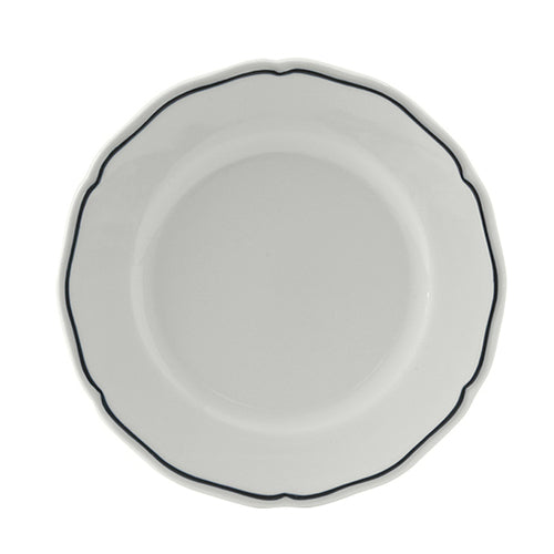 Plate, 6-1/2" dia., round, scalloped edge, microwave & dishwasher safe, oven proof, fully vitrified, lead-free, porcelain, TuxTrendz®©, Charleston, Porcelain White with Blue Band