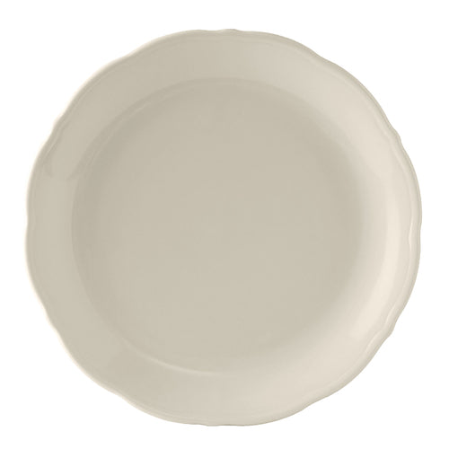 Plate, 10" dia., round, scalloped edge, microwave & dishwasher safe, oven proof, fully vitrified, lead-free, ceramic, DuraTux®©, Seabreeze, American White/Eggshell