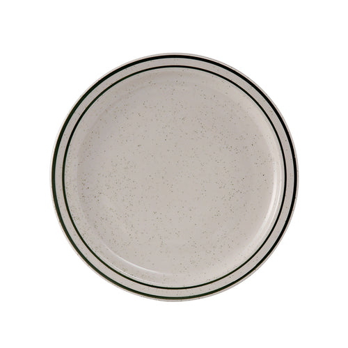 Plate, 7-1/4" dia., round, narrow rim, microwave & dishwasher safe, oven proof, fully vitrified, lead-free, ceramic, Emerald, American White/Eggshell with Green Speckle