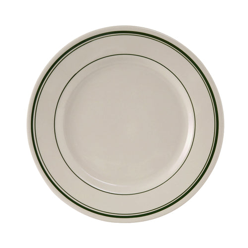 Plate, 8-3/8" dia., round, wide rim, rolled edge, microwave & dishwasher safe, oven proof, fully vitrified, lead-free, ceramic, Green Bay, American White/Eggshell with Green Band