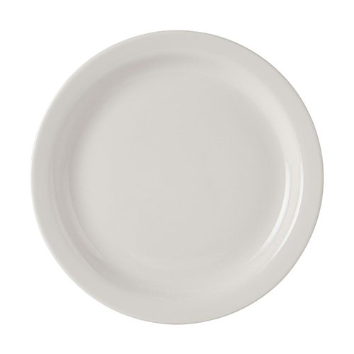 Plate, 9" dia., round, narrow rim, microwave & dishwasher safe, oven proof, fully vitrified, lead-free, ceramic, TuxCare®©, Healthcare, Nevada,Eggshell