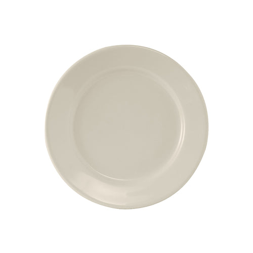 Plate, 6-1/4" dia., round, wide rim, rolled edge, microwave & dishwasher safe, oven proof, fully vitrified, lead-free, ceramic, Reno, American White/Eggshell