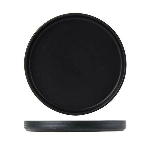 Plate, 6-1/2" dia. x 5/8"H, round, straight side, microwave & dishwasher safe, oven proof, fully vitrified, lead-free porcelain, TuxTrendz®©, Zion, matte black