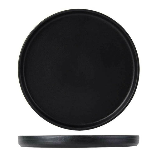 Plate, 8-1/4" dia. x 3/4"H, round, straight side, microwave & dishwasher safe, oven proof, fully vitrified, lead-free porcelain, TuxTrendz®©, Zion, matte black