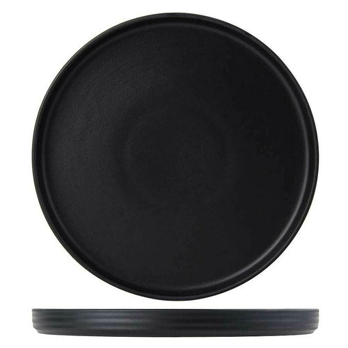 Plate, 10-3/4" dia. x 7/8"H, round, straight side, microwave & dishwasher safe, oven proof, fully vitrified, lead-free porcelain, TuxTrendz®©, Zion, matte black