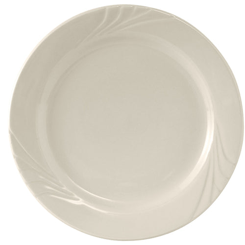 Plate, 12" dia., round, wide rim, embossed, microwave & dishwasher safe, oven proof, fully vitrified, lead-free, ceramic, TuxCare®©, Healthcare, Monterey, American White/Eggshell