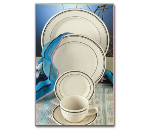 Plate, 9" dia., round, wide rim, rolled edge, microwave & dishwasher safe, vitrified china, Del Mar Green Collection, American White