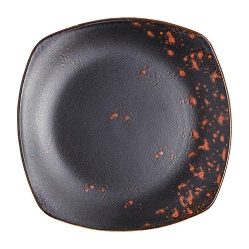Plate, 8-1/2" x 8-1/2", square, hand painted, fully glazed foot, scratch resistant, aluminum oxide reinforced body, porcelain, matte black/terra cotta reactive glaze, Premium, London Moonstone Collection