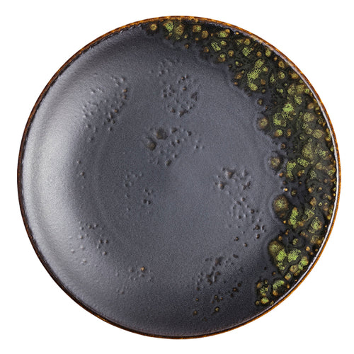 Plate, 10" dia., round, coupe, hand painted, fully glazed foot, scratch resistant, aluminum oxide reinforced body, porcelain, matte black/jade reactive glaze, Premium, London Moonstone Collection