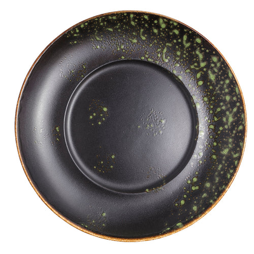 Entrée Plate, 11-1/2" dia., round, wide rim, hand painted, fully glazed foot, scratch resistant, aluminum oxide reinforced body, porcelain, matte black/jade reactive glaze, Premium, London Moonstone Collection