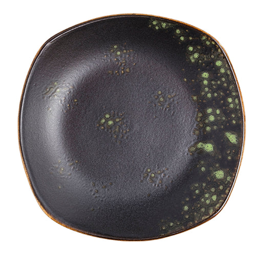 Plate, 6-1/2" x 6-1/2", square, hand painted, fully glazed foot, scratch resistant, aluminum oxide reinforced body, porcelain, matte black/jade reactive glaze, Premium, London Moonstone Collection
