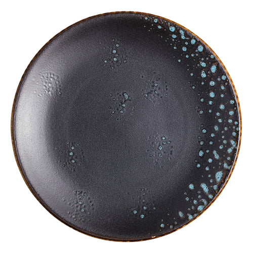 Plate, 8" dia., round, coupe, hand painted, fully glazed foot, scratch resistant, aluminum oxide reinforced body, porcelain, matte black/sky blue reactive glaze, Premium, London Moonstone Collection