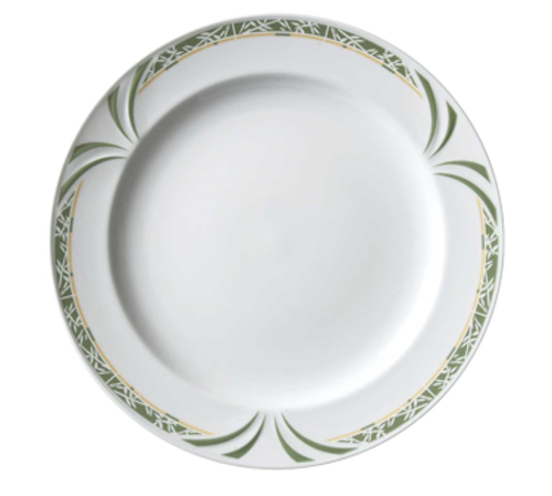 Plate, 10-3/8" dia., round, mid rimmed, embossed, polished foot, porcelain, bright white, Premium, Euro Collection, Palm, Key Largo