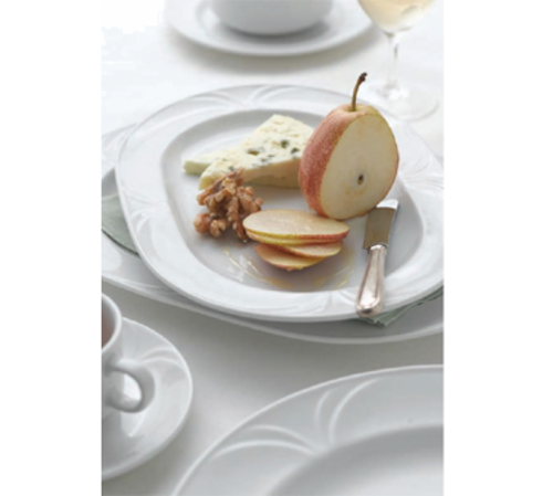 Plate, 7" dia., round, mid rimmed, embossed, polished foot, porcelain, bright white, Premium, Euro Collection, Palm