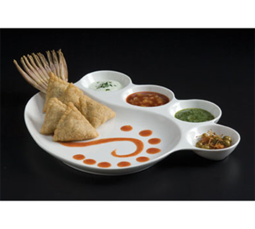Impression Plate, 12-1/4"L x 11"W x 1"H, divided, four compartment sauce cup, porcelain