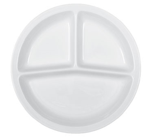 Compartment Plate, 10-1/5" dia., 3-compartment, porcelain, white, Hospital Range by Bauscher