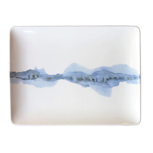 Share Plate/Platter, 7-15/16" x 5-15/16", rectangular, coupe, porcelain, blue/white, Watercolor by Bauscher