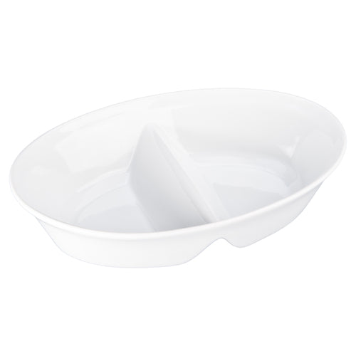BIA Cordon Bleu® Server, 10-1/2"L x 7-1/4"W x 2-3/4"H, oval, divided, 2-compartments, dishwasher/microwave/oven safe, porcelain, white (2 each minimum order) (NET)