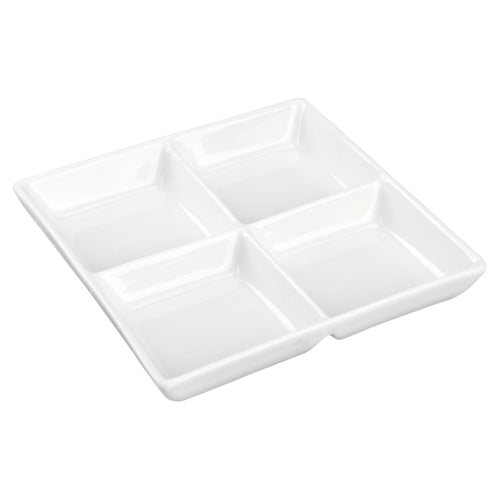 BIA Cordon Bleu® Divided Appetizer Dish, (4) 8-1/2 oz. compartments, 10"L x 10"W x 1-1/2"H, square, dishwasher/microwave/oven safe, porcelain, white (2 each minimum order) (NET)