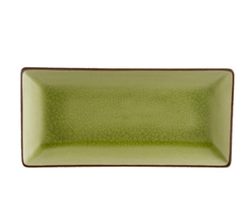 Japanese Style Platter, 11-1/2"L x 6-1/2"W x 1-1/4"H, rectangular, dishwasher, oven and microwave safe, stoneware (ceramic), reactive glaze, Golden Green (Sold by case)