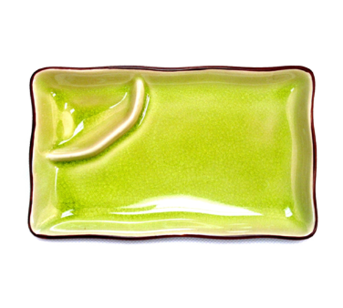 Japanese Style Plate, 8"L x 4"W x 1-1/4"H, rectangular, with sauce compartment, dishwasher, oven and microwave safe, stoneware (ceramic), reactive glaze, Golden Green (Sold by case)