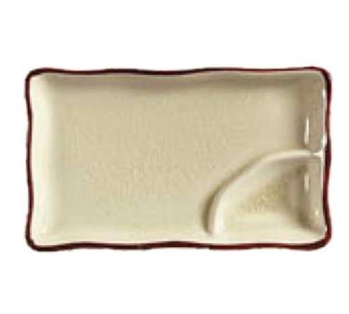 Japanese Style Plate, 8"L x 4"W x 1-1/4"H, rectangular, with sauce compartment, dishwasher, oven and microwave safe, stoneware (ceramic), reactive glaze, Creamy White (Sold by case)