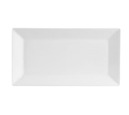 Cambridge Platter, 13"L x 7-1/4"W x 1"H, rectangular, embossed rim, dishwasher, oven and microwave safe, porcelain, Super White (Sold by case)