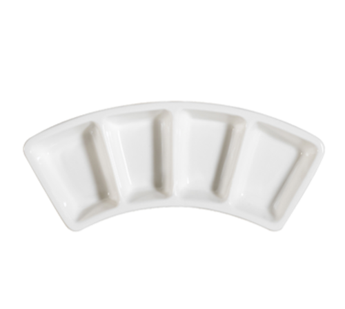 Accessories Dish, 8-1/2"L x 3"W x 1"H, arched rectangle, 4-compartments, dishwasher, oven and microwave safe, porcelain, Bone White (Sold by case)