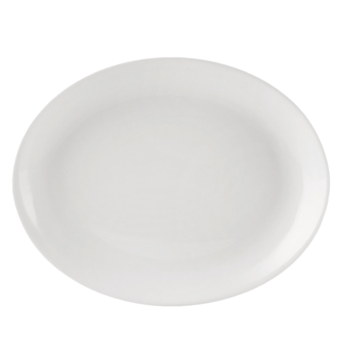COP™ Platter, 9-1/2"L x 7-1/4"W x 1-1/4"H, oval, coupe, dishwasher, oven and microwave safe, porcelain, Super White (Sold by case)