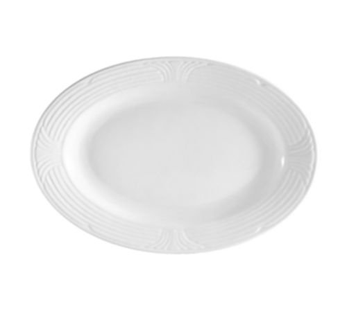 Corona Platter, 18"L x 12-1/4"W x 1-1/2"H, oval, embossed, dishwasher, oven and microwave safe, porcelain, Super White (Sold by case)