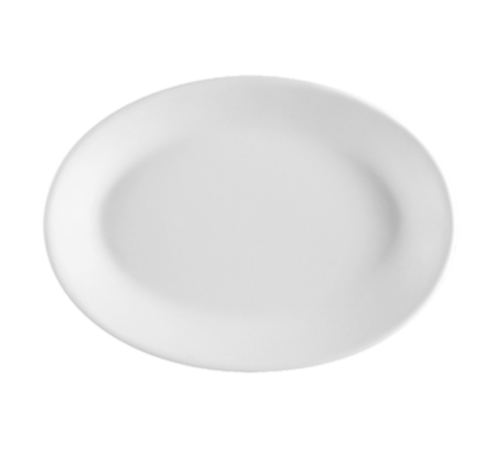 Franklin Platter, 12-1/2"L x 8-3/4"W x 1-1/4"H, oval, rolled edge, dishwasher, oven and microwave safe, stoneware (ceramic), European White (Sold by case)
