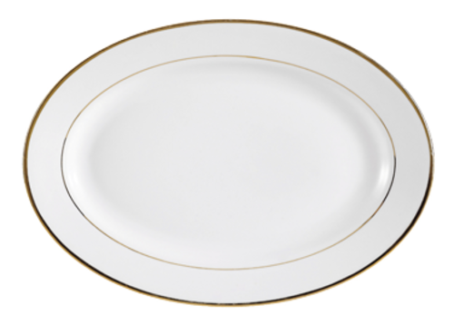 Golden Royal Platter, 12"L x 8-5/8"W x 1-3/8"H, oval, dishwasher and oven safe, porcelain, Gold Band/Super White (Sold by case)