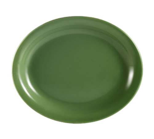Las Vegas Platter, 9-3/4"L x 7-1/4"W x 3/4"H, oval, narrow rim, dishwasher, oven and microwave safe, stoneware (ceramic), Green (Sold by case)