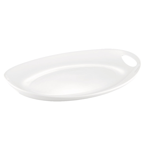Catering Collection Tray, 20-1/4"L x 13-1/2"W x 3"H, oval, deep, with 2 handles, dishwasher, oven and microwave safe, porcelain, Super White (Sold by case)