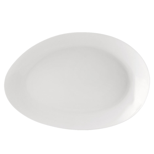 Clinton Platter, 11-1/2"L x 6-3/4"W x 1"H, egg shape, coupe, dishwasher, oven and microwave safe, porcelain, Super White (Sold by case)