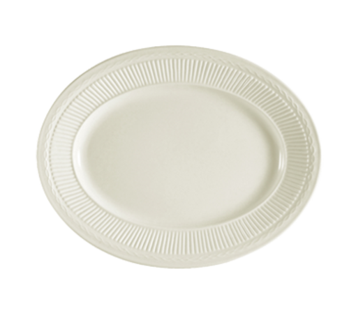 Ridgemont Platter, 12"L x 9-3/8"W x 1-1/2"H, oval, embossed, dishwasher, oven and microwave safe, stoneware (ceramic), American White (Sold by case)